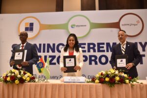 حيث شهدت قاعة اللؤلؤة بفندق آيلا جراند—بمدينة جيبوتي -اليوم الأربعاء 4 فبراير 2026 .. مراسم توقيع الاتفاقية الاستراتيجية الثلاثية لتدشين مبادرة هورايزن فايبر(التي تمثل علامة فارقة في تطوير البنية التحتية الرقمية الإقليمية، عبر نشر شبكة ألياف بصرية عابرة للحدود بسعات تصل إلى عدة تيرابت).