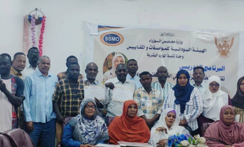 في خطوة وصفت بالمميزة أقيمت الهيئة العامة للمواصفات والمقاييس درة تدريبية لمنسوبيها في كيفية إدخال الليزر في الأختام وخاص الذهب حيث عقدت الدورة بولاية كسلا لعدد مقدر من مهندسي المواصفات لفتر ة تتراوح لعشرة أيام بالولاية كسلا تأتي هذه الخطوة إمتداد لجودة العمل وتطوير المؤسسة والمحافظة على السلع في وقت يشهد فيه السودان كثير من المتغيرات حيث أعرب المتدربون عن سعادتهم بالدورة التي تعتبر إضافة حقيقة لهم مؤكدين أهمية الختم في السلع والخدمات التي تقدمها الهيئة ،وان المواد البشرية بالمواصفات حريصة على تطوير الكوادر البشرية وان المسؤلية للجمع وسلامة المنتج منأولوياتنا