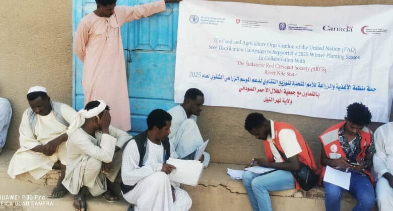 اختتمت جمعية الهلال الأحمر السوداني فرع نهر النيل محلية المتمة حملة منظمة الأغذية والزراعة للأمم المتحدة الفاو ،لتوزيع التقاوي لدعم الموسم الشتوي ٢٠٢٥م بتمويل كندي وإيطالي