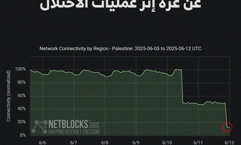 أعلنت هيئة تنظيم قطاع الاتصالات الفلسطينية اليوم الخميس 12 يونيو، عن انقطاع خدمات الإنترنت والاتصالات في غزة بعد استهداف الاحتلال للبنية التحتية.