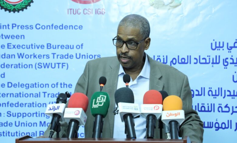 جاء ذلك خلال المؤتمر الصحفي الذي عقده المكتب التنفيذي للاتحاد العام لنقابات عمال السودان بمدينة بورتسودان اليوم الاثنين، بقاعة “بانوراما” برئاسة هيئة الموانئ البحرية، بحضور وفد الكونفدرالية الدولية، لمناقشة سبل دعم الحركة النقابية السودانية وإعادة الإعمار المؤسسي لفترة ما بعد الحرب.